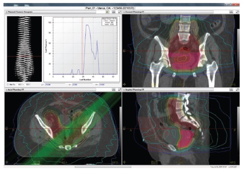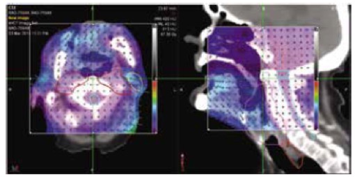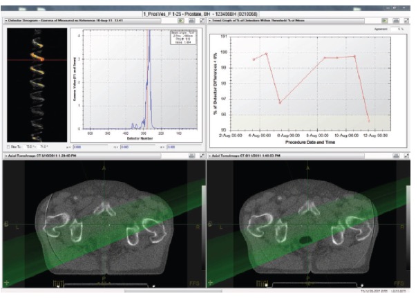 - ανακατασκευάζει την μετρούμενη κατανομή δόσης στις εικόνες αξονικής τομογραφίας του ασθενή και την συγκρίνει με αυτή του πλάνου θεραπείας