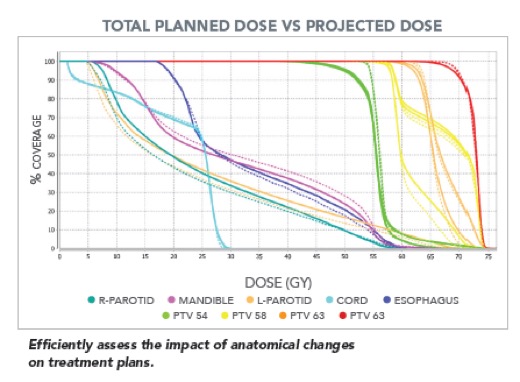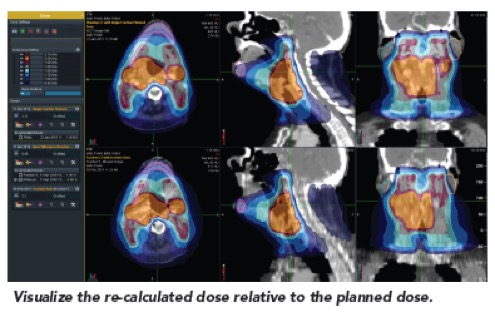 - Αυτόματος υπολογισμός της χορηγούμενης κατανομής δόσης στον ασθενή με βάση της καθημερινές εικόνες αξονικής τομογραφίας