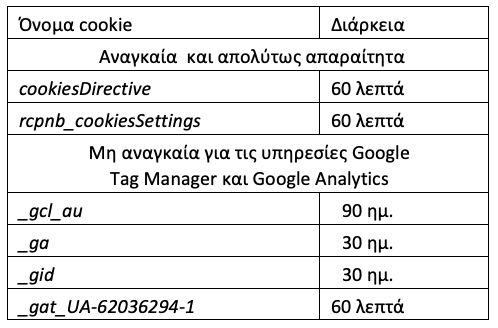 - Τα προσωπικά σας δεδομένα που καταγράφονται με τη συγκατάθεση σας στα cookies, διατηρούνται ως εξής: