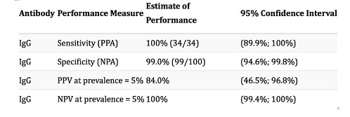 Ο έλεγχος παρουσίας ειδικών IgG αντισωμάτων κατά του κορωνοϊού COVID-19 σε συνδυασμό με τα ιστορικό του ασθενούς θα μας δείξει, αν ο εξεταζόμενος έχει έρθει σε επαφή με τον ιό. Σημειώνεται ότι τα αντισώματα είναι περισσότερο αυξημένα αν ο ασθενής είχε συμπτώματα, ενώ είναι σε χαμηλό τίτλο αν η μόλυνση με τον ιό παρέμεινε χωρίς συμπτώματα. Επίσης φαίνεται ότι τα αντισώματα αυξάνουν μετά την 14-21η μέρα από την αρχή των συμπτωμάτων.